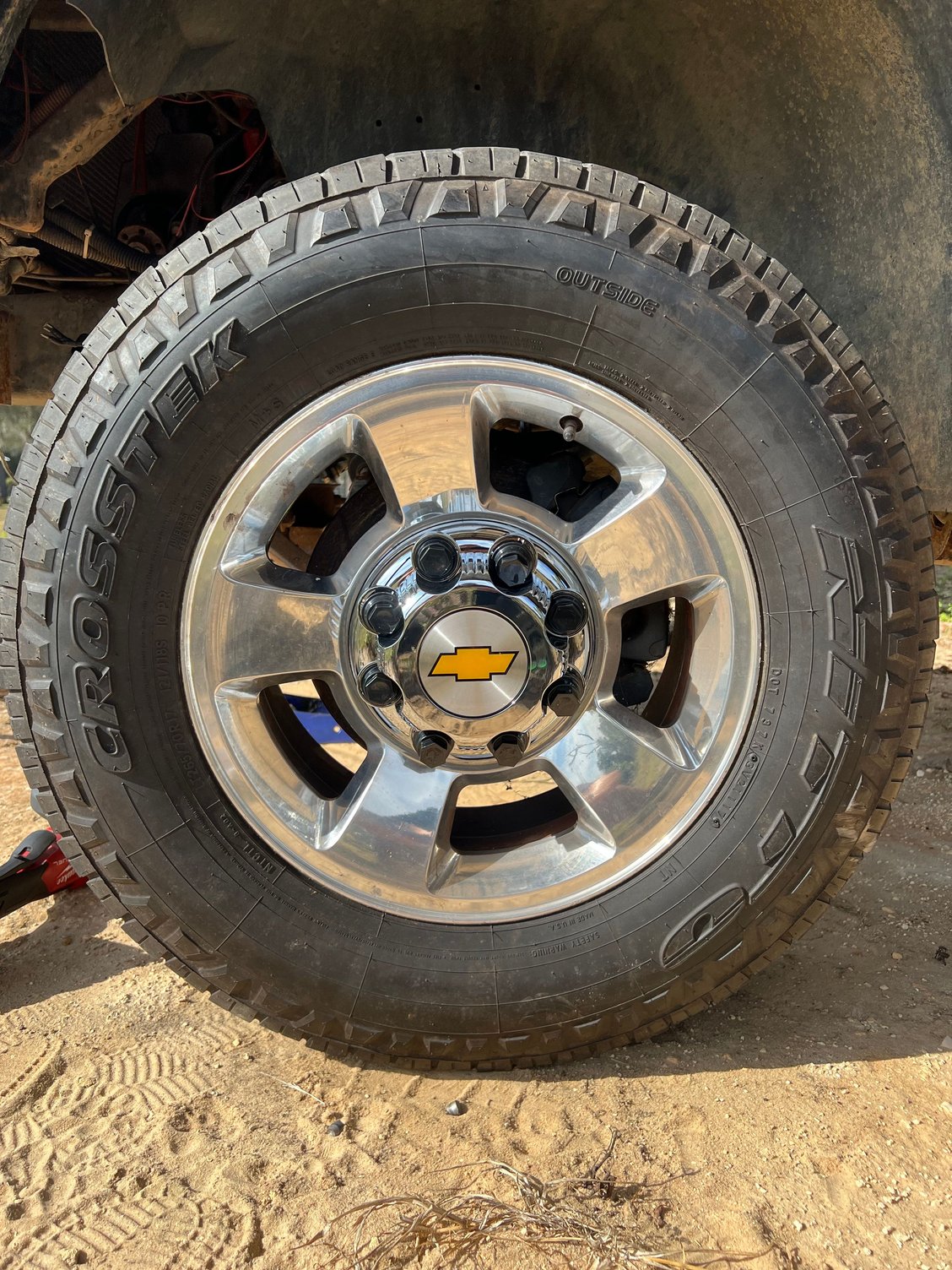 I'm running these Dodge Ram 2500 wheels on my 8x6.5 truck I have a Hummer H2 axle in the rear and adapters in the front that probably widens each side 2". If you want a wider stance Hummer H2 wheels are pretty popular to run, both wheels can run the stock 8 lug chevy or GMC caps.
