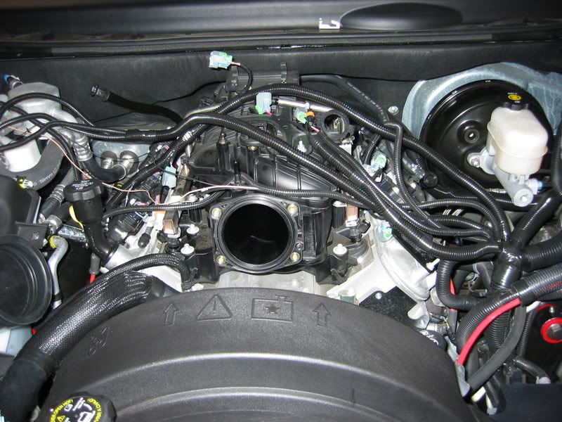 I went ahead and pulled the intake and changed the plugs to the NGK TR6 (2 steps colder then stock) gapped at .035. I removed the bracket bolt from the rear of the valley and relocated the transmission vent that was attached to the bracket.