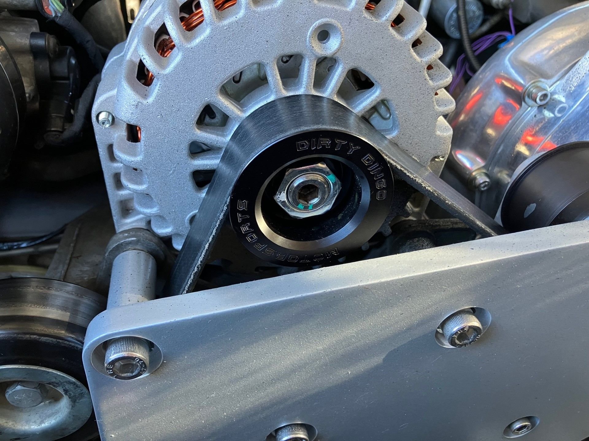 2) Dirty Dingo makes the 8 rib pulleys. I had mine hard anodized, they ship raw Alt PulleyPS Pulley