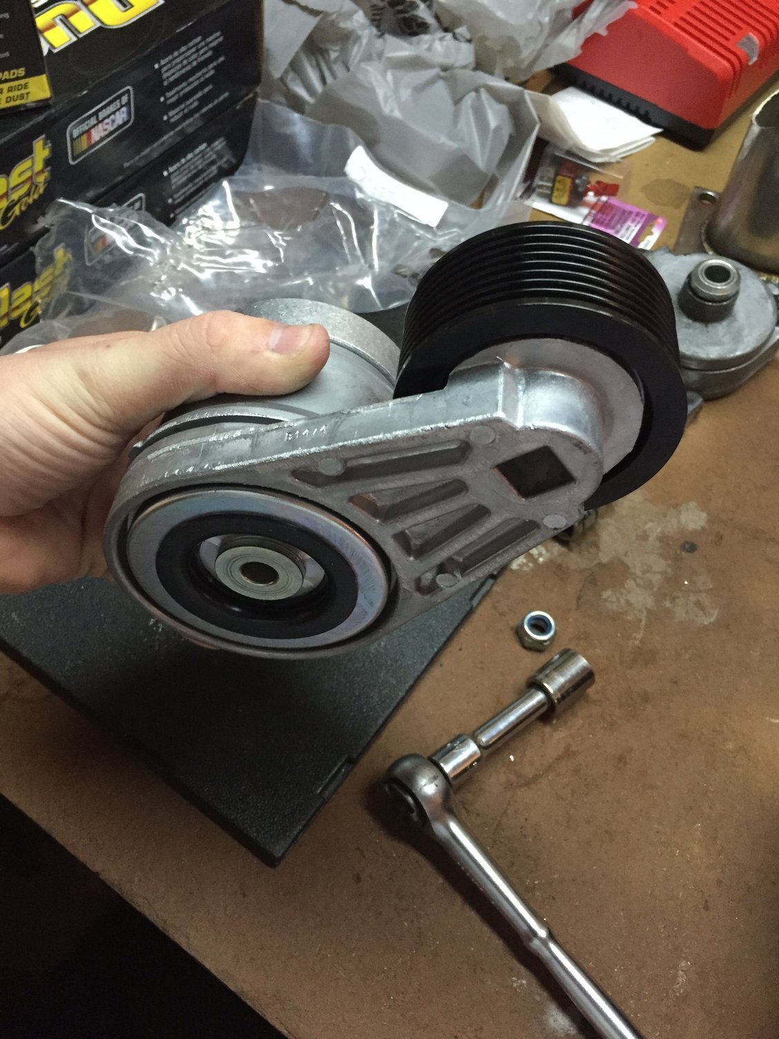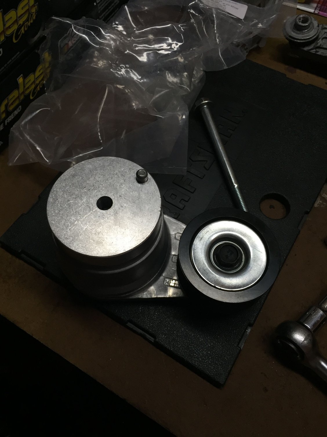 Ya I paid $180 for the tensioner. It's got a heavy spring in it. A lot stiffer than the stock Maggie one. I'll take some pics of the pullies tomorrow for you. They aren't too pretty anymore... Shredded belts got rubber all over the place. Wasn't too happy about that.