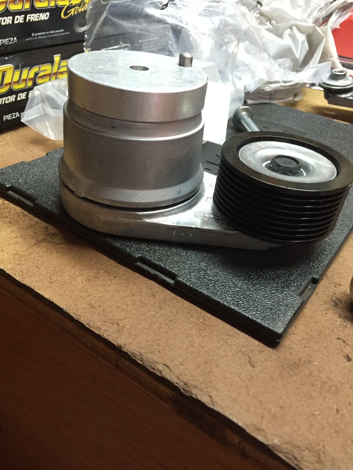 03sierra I tried that and it's the same both way... But did find out the bolt holding the pulley on is reverse threads on this new tensioner haha. And atomic ya I didn't need a straight edge either it was bad. I got the laser tool to use the dot as a measure point to get a thickness for the spacer I'd need.