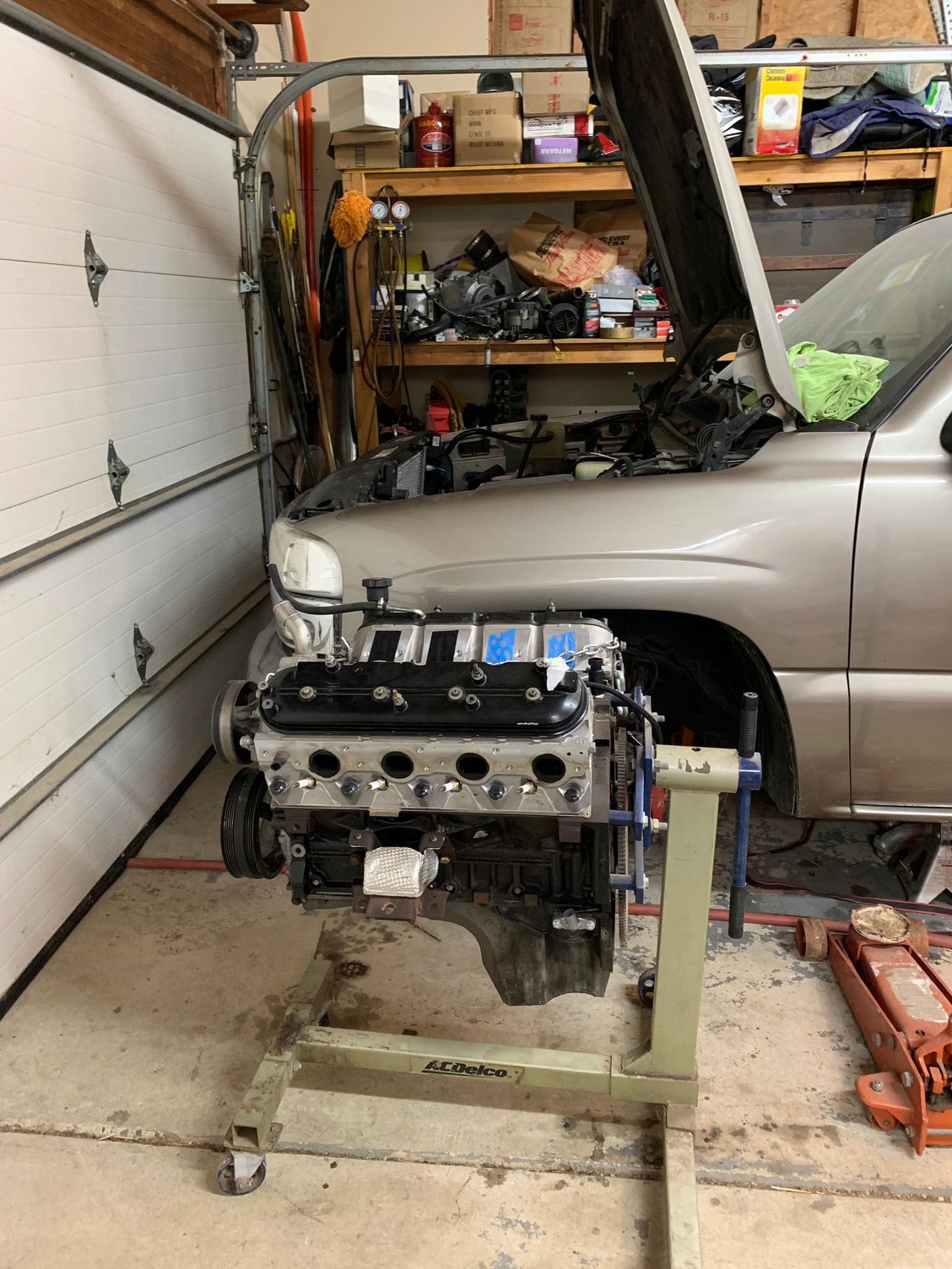 out of all the swaps I’ve done this one has fought me the most... think because it’s been so long I’m constantly looking for all my bolts... found some on a shelf, over on a table, on the floor, I was bad and didn’t organize before winter hit, sockets everywhere etc