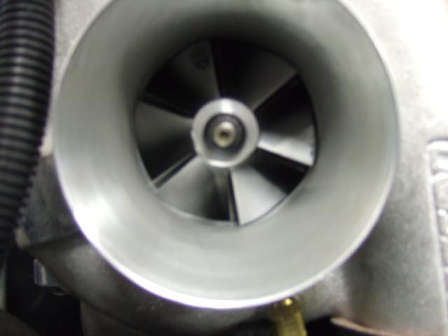 A little while after I got back I went into town to grab something to eat. I got on it a little bit on the way.It felt great. The turbo pulls completely different than the Radix did. Went into the resturaunt and ate. Then went out to the HO and fired her up. I started going down the road and it wouldnt make boost. I stopped checked all of the intercooler pipes and checked to see if the bov was stuck open. All was well, until I pulled off the elbow and air filter to find the impeller wheel on the compressor had eaten down into the compressor housing and was stuck.