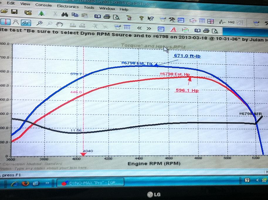 See attached Dyno graph shot by my iPhone.