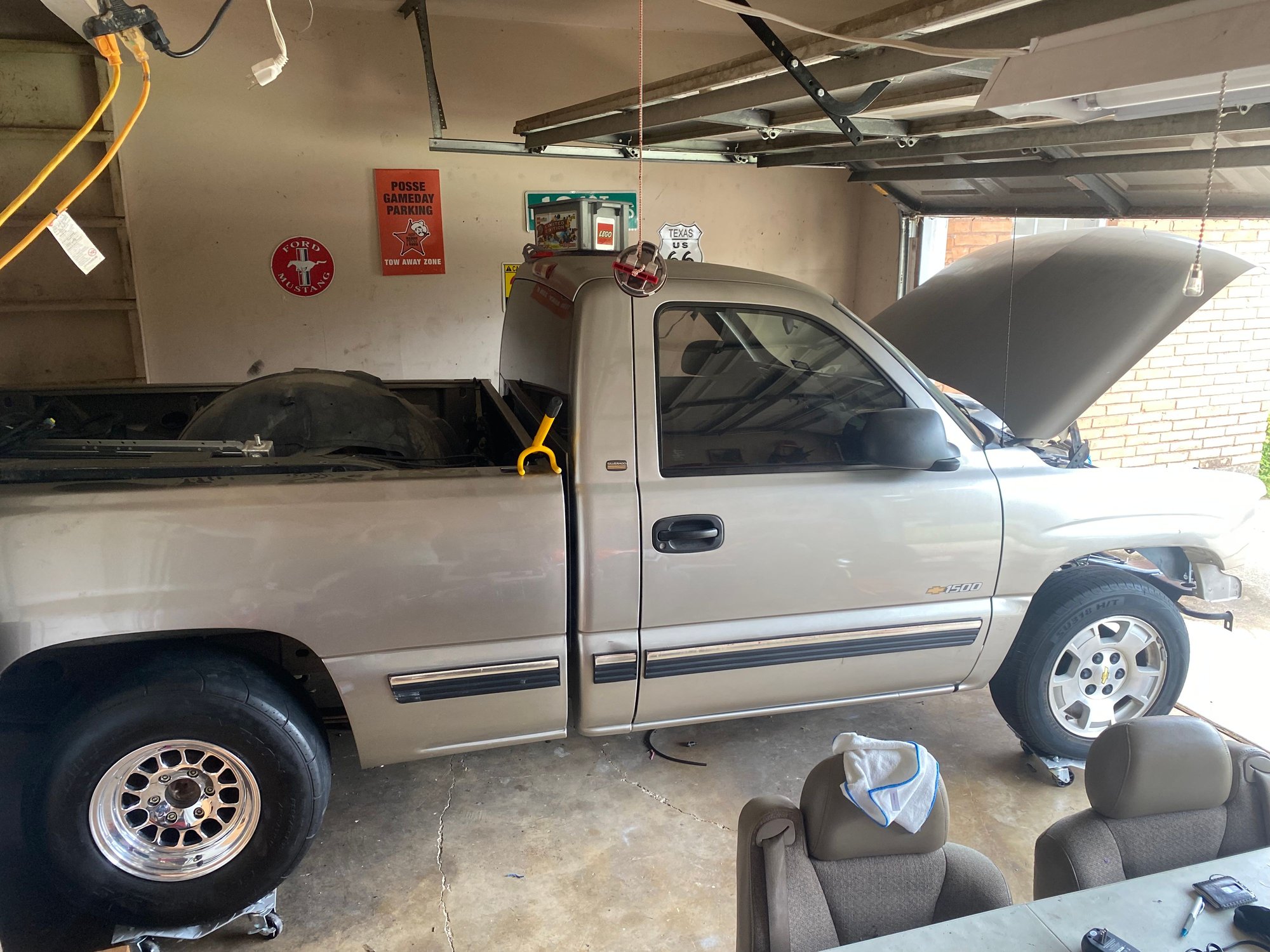 Scooped a fairly clean 2001 RCSB V6 truck off of marketplace. It was decent not perfect but not destroyed. I also found a 5.3 with no oil pressure and two KO'ed 4l80e cores. Basically started from scratch everything needed to be replaced. The truck has 240k miles on it but no major rust or issues just a few whiskey dents and normal wear and tear. I've acquired most the parts and started assembly. I decided not to cut any corners so this as a very slow build as I'm buying what I want as I can afford it.
