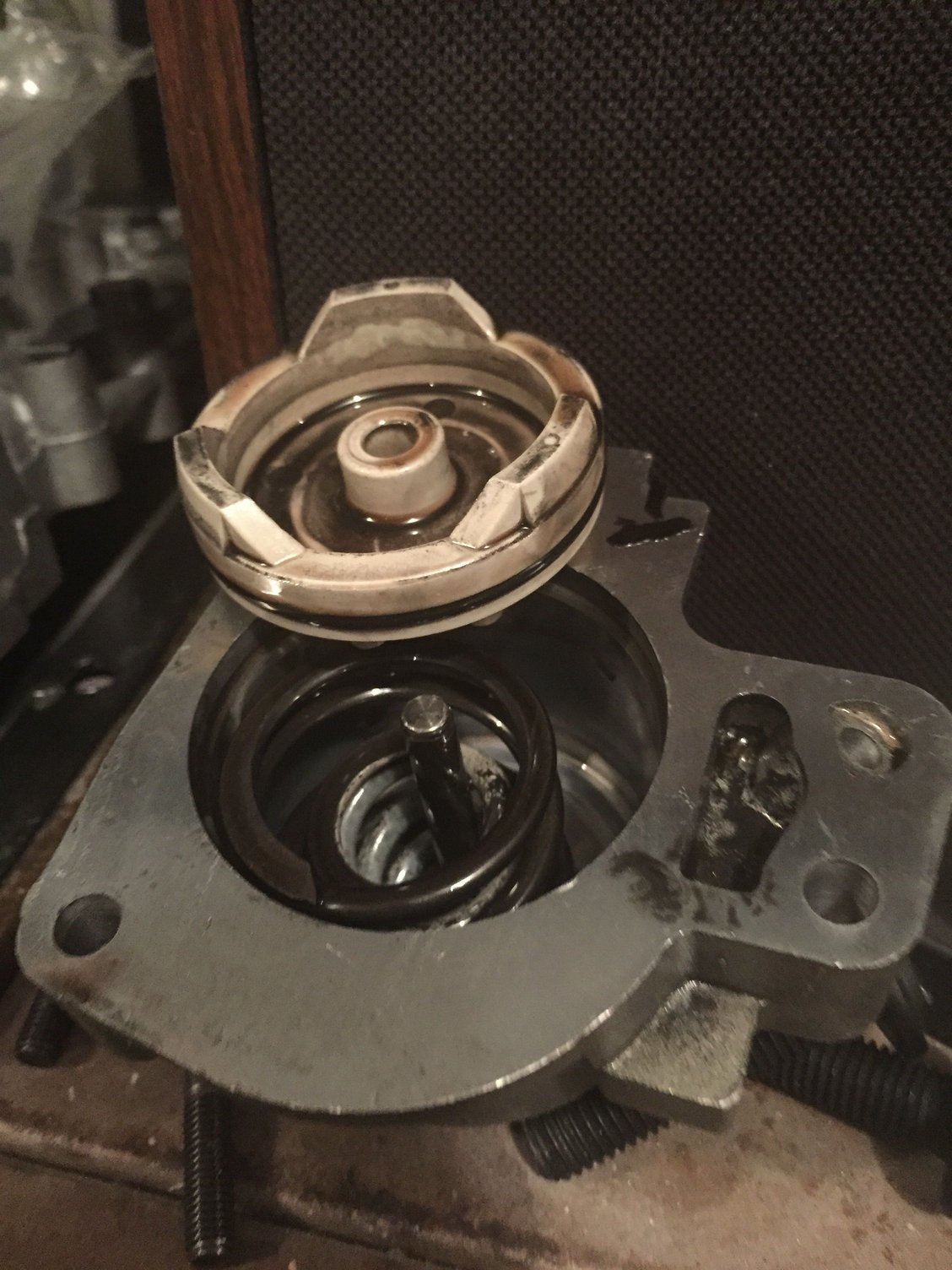 Should be able to reuse the stock spring... Order from rockauto, got 2 of them shipped for less than what everyone else wanted for one before shipping...fluid has different thickness cold and warm...
