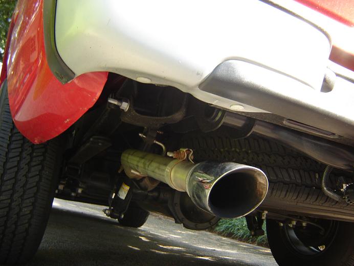 I put a Corsa Pro series dual rear exit cat back on my 2006 GMC rcsb and the left pipe will not stay put on the hanger. Within a day of retightening eveything on the system it starts sagging. I have gone through 4 times and re-adjusted the whole system, muffler to tips and it keeps doing the same thing. I have started in the rear and tightened towards the front, and vice versa. Is there anything I should try boefore fabbing my own brackets? Here's a pic of what it's doing... in the last pic, I rotated the pipe up, but as soon as I move, it falls back down, despite the clamp being tightened with an impact. Any input is appriciated...