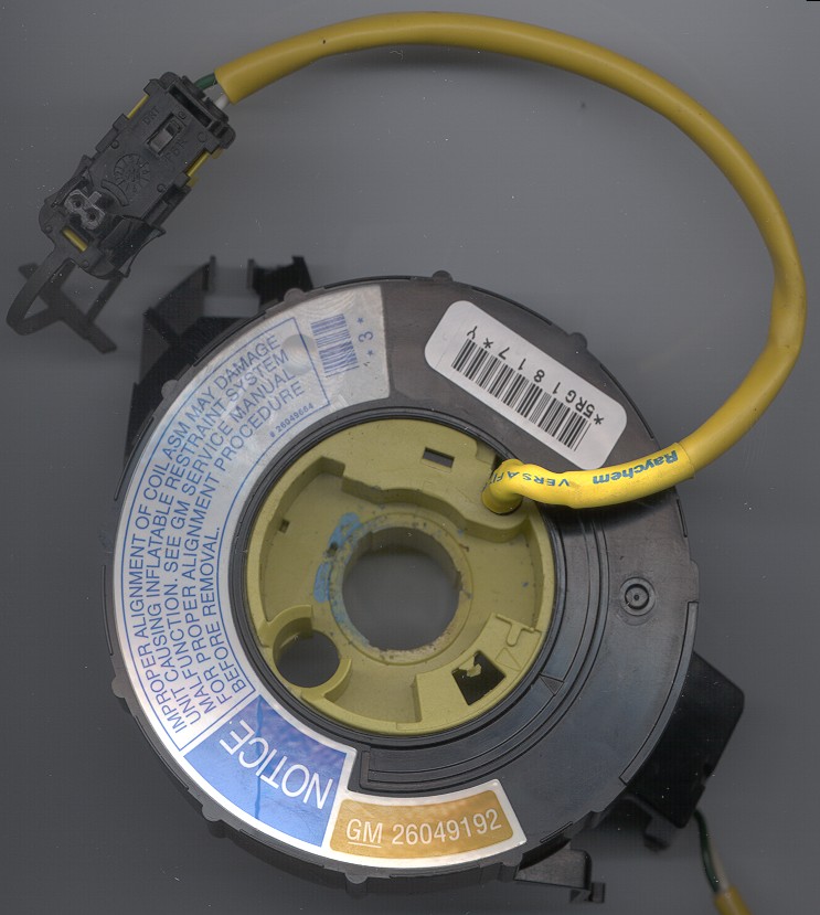 Uh-oh. Somebody spun the wheel when the shaft was off. That usually kills the clock spring at the head end of the column under the steering wheel. Not really a good thing.