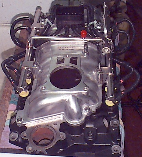 That is a very carefully tinkered-with L31 Marine EFI intake manifold. It's not installed yet but it will be this year. It has real injectors, will have functional EGR, will connect to the stock fuel lines, and it will literally plug in and bolt down in place of the stock CPI manifold.