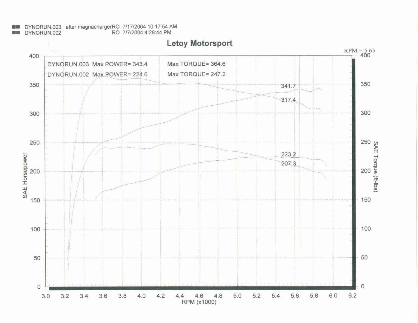 A basically stock SS posted numbers of 407/458 yesterday with tuning and flowmaster mufflers. No headers and stock pulley. A similar truck N/A would do about 305/330. I'm expecting just a bit more out of mine.