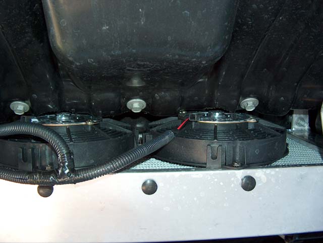 Not much room between the brush guard and the fans. It was a real pain getting those bolt back in after the heat exchanger was mounted