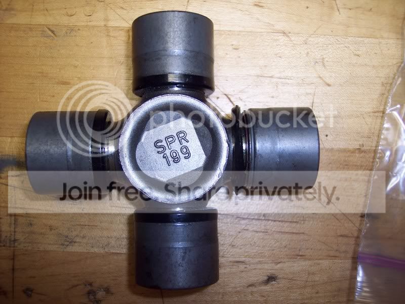 Spicer 1350 U-joint (DAMAGED) I had to replace it becuase it was the wrong size and was setup for locator tabs. This won't fit a stock GM 10-Bolt. It was off by about 1/16". It wouldnt slip into the diff. 2 plastic locks were broke while removing it from the driveshaft. Could be easily repaired but I dont need it. $25 shipped