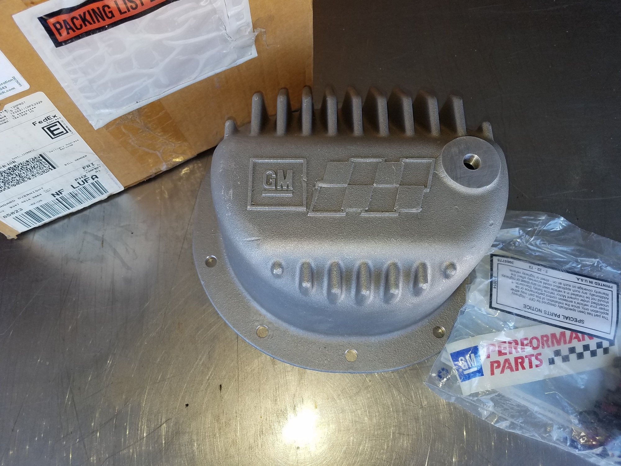 Brand new in box GM Performance parts rear diff cover. GM 8.5/8.625 rear diff cover. Double capacity, finned aluminum. $100 shipped. This part is discontinued and no longer produced. SOLD..