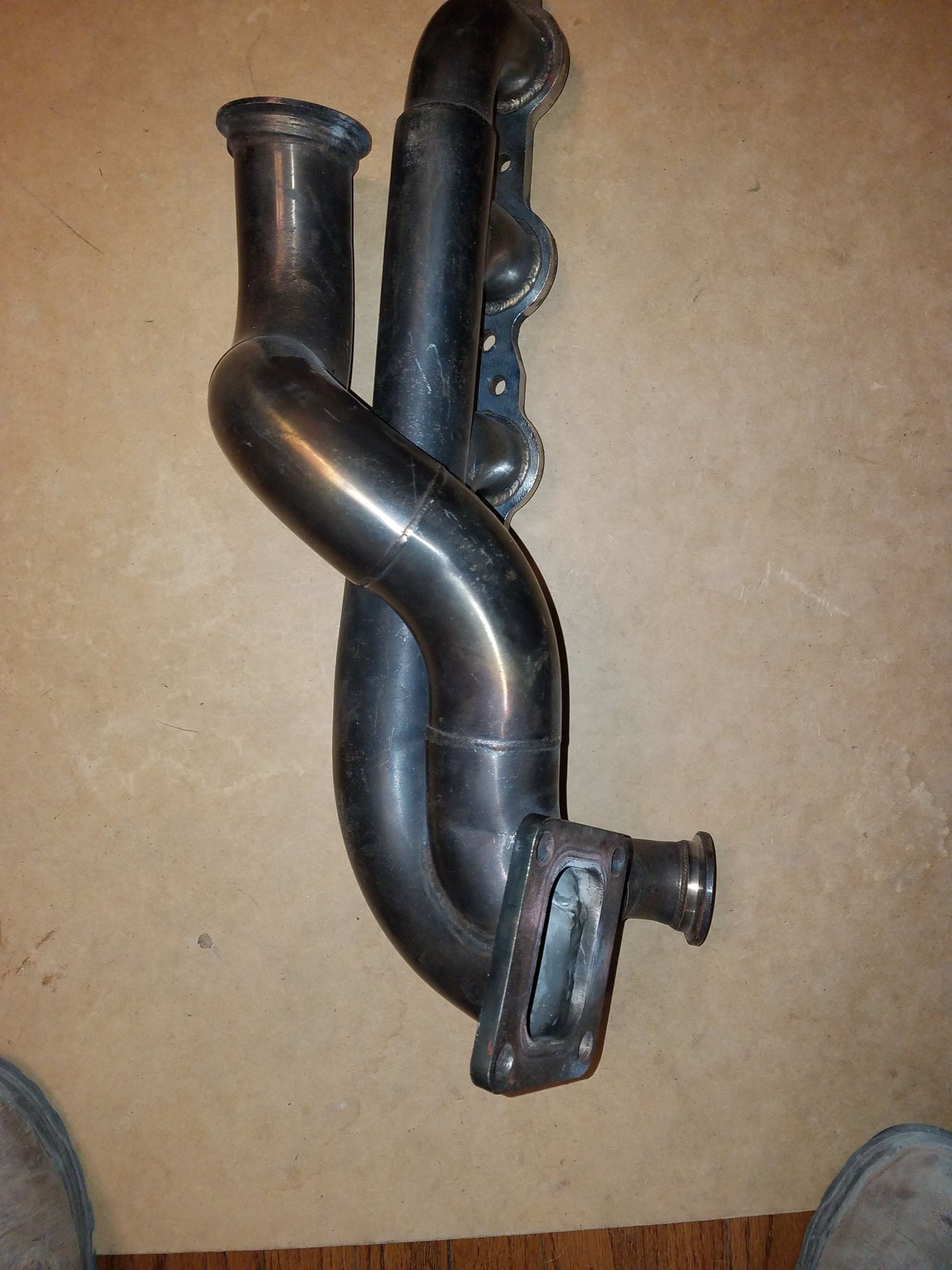 Manifold, downpipe, crossover, wastegate with dump tube, and some other miscellaneous stuff. I bought this used. When I got it, the manifold was really warped. I had a friend surface it, and it's a lot better, but not perfect. Worst case, a new flange would have to be welded on. I never installed the whole thing, only the manifold. A vs7875 fit nicely with some tweaking to the ac line and heater core hoses.