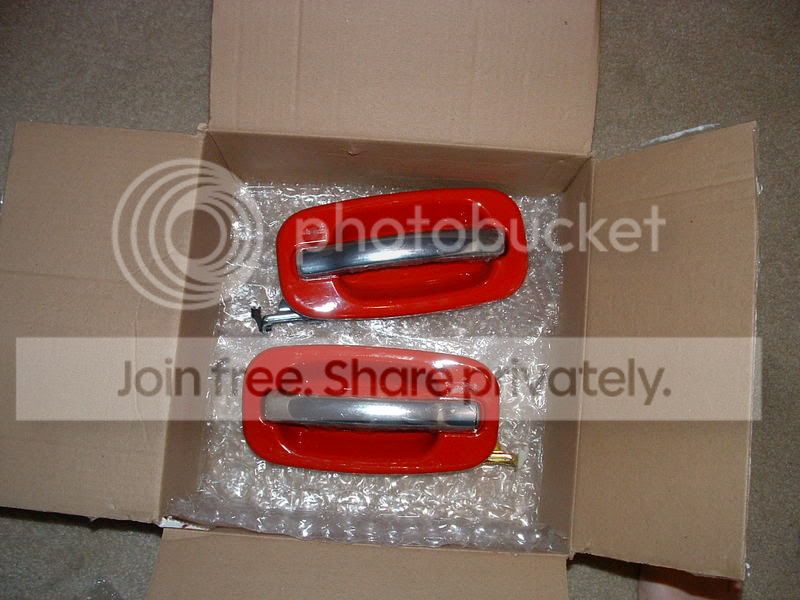 I have a pair of Red Escalade handles for sale that are brand new. These are not the same as the front door handles, the mounting hardware looks different. The chrome part still has the protective plastic covering. I can get more photos, if necessary.