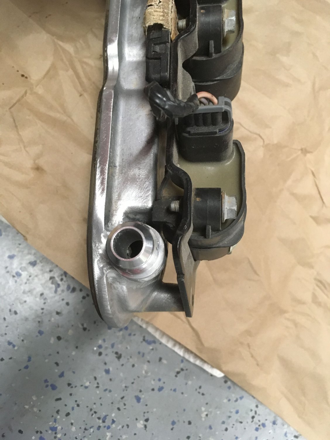 Catch can bungs with stock truck coils, where???