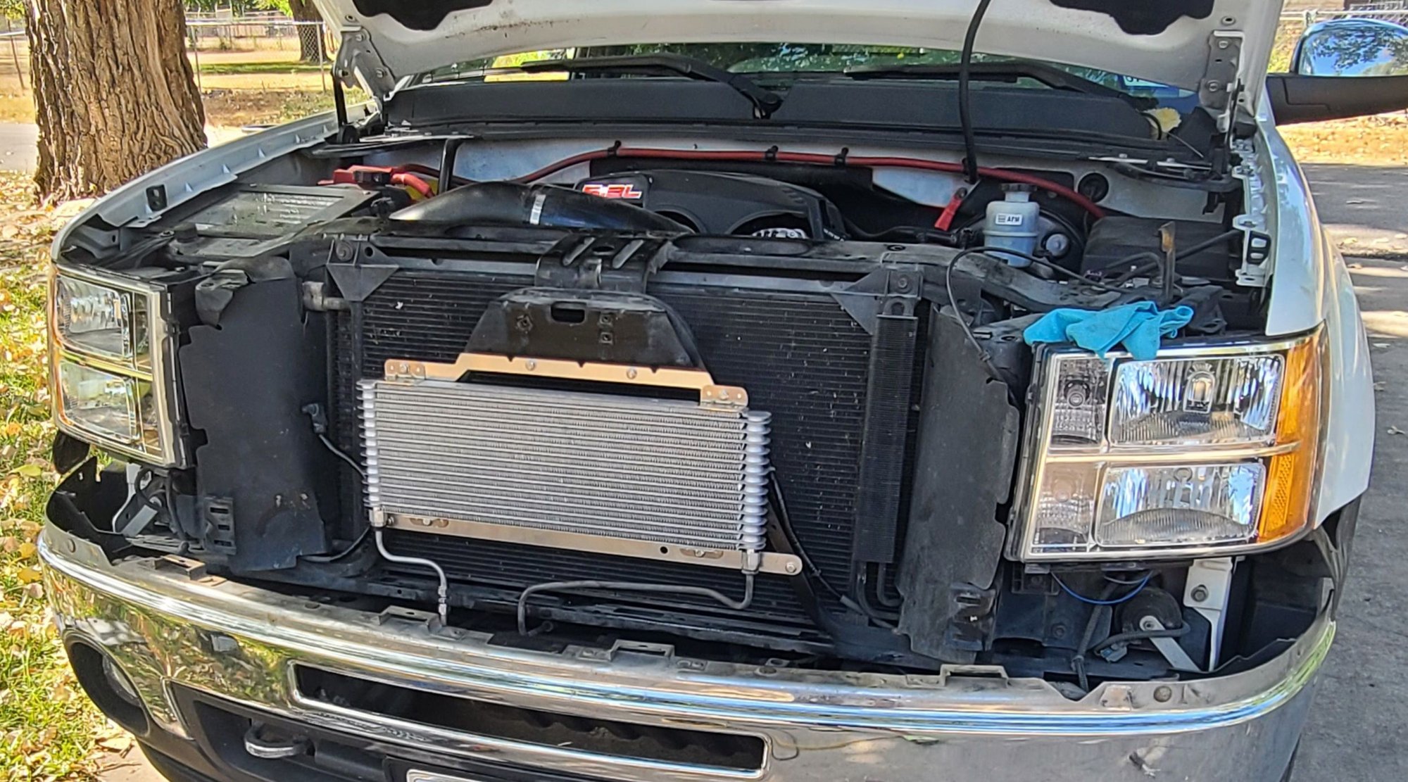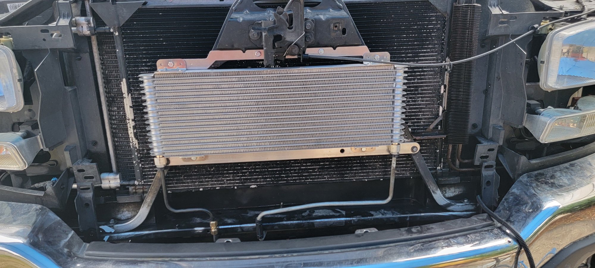 I installed on a 2010 gmc sierra. I cut the lower support bracket off and grinded the weld spot flat and repainted. Then I realized how am I going to mount the grill bracket back on without the 2 mounting holes on the lower support. Fix was using the 2 out of 4 heavy sheet metal screws from the cooler install kit with some larger washer I had laying around. Used stainless hardware for the rest and stainless superlok compression fitting. Rerouted the temp and hood latch sensor no problem. Temp sensor went onto the passenger side air baffle. Small hole drilled into it and pushed it in. Took about 3-4 hours with my OCD. Came out pretty well. Thank you for the excellent brackets.