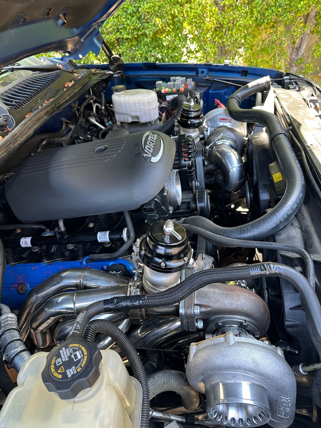 I plan on wrapping them and doing everything I possibly can, turbo blanket, ect. The headers and hot side is all finger tight right now. So I could get a better idea of what I want to move or shield. Wanted to move the computer and fuse box but seems like more work than I want to do right now. But this is a temporary setup in the end anyway. Plans after I get trans and stuff I’ll play with the truck for a bit but I plan on pulling the motor and doing a full custom titanium plumbing I’m going to tig up while the motor gets forged and built, and of course bigger turbos lol.
