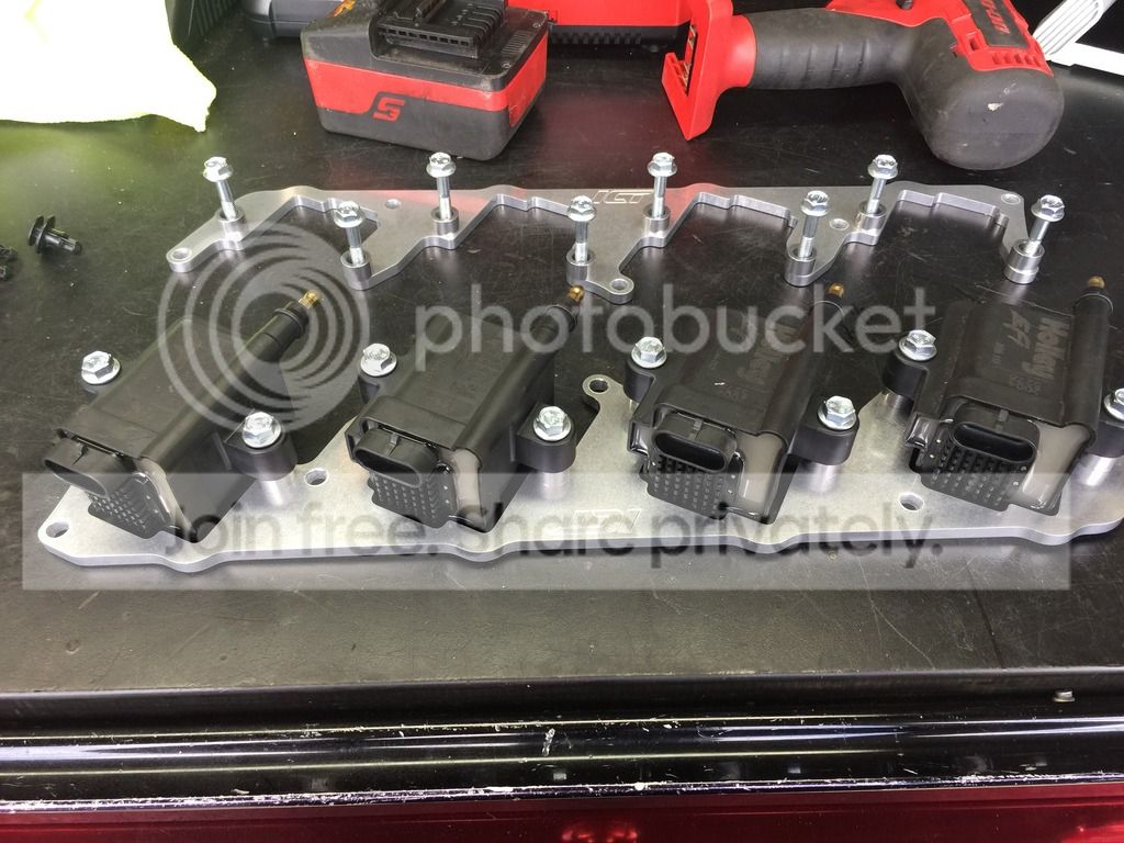 They are in mass production lol... They are brackets that are supposed to replace the metal coil mount bracket on Ls valve covers. They happen to fit perfectly down low by mounting them off the back bolt on the ac compressor and off the power steering support bolt on the side of the block. What I used for bolts were those stud type transmission bolts, the one that are a m10 1.50 on one side and like a m6 on the other. That let me replace the stock bolts on both sides of the block and add a stud to mount the coil bracket to. Hopefully that makes sense, if you need better pics I'll get them for you.