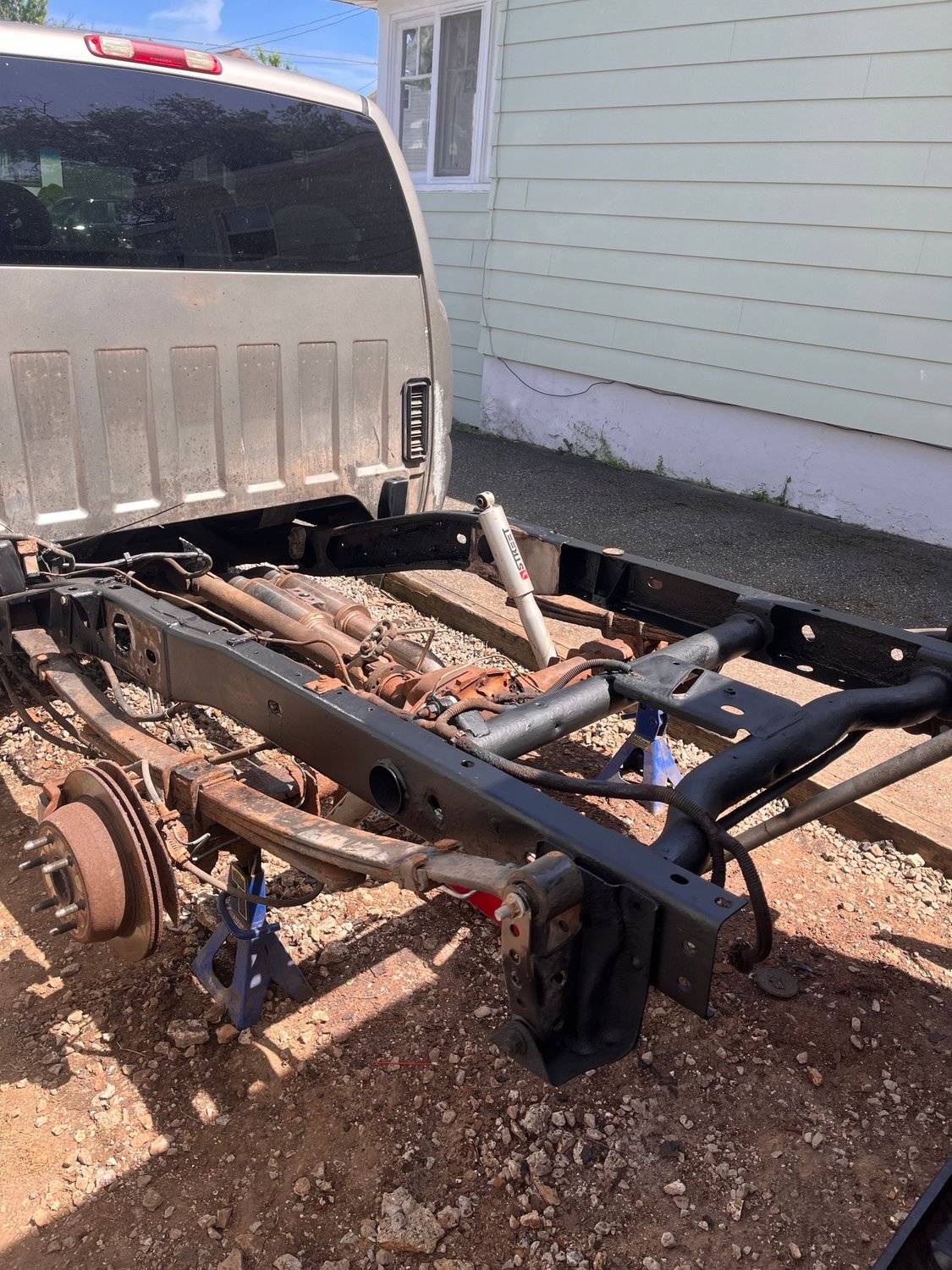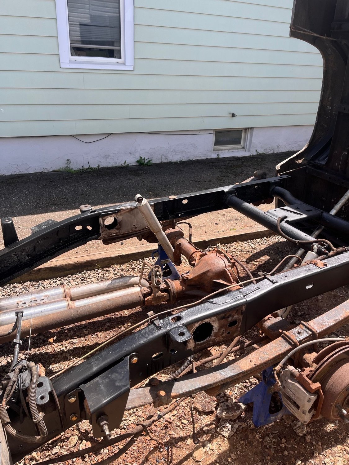 i managed to cut out some rotten pieces of frame and weld in new steel. should be able to put everything back together next weekend and get the bed back on. then i will take the rear end out and clean and paint it, and install the new posi and 4.10 gears.