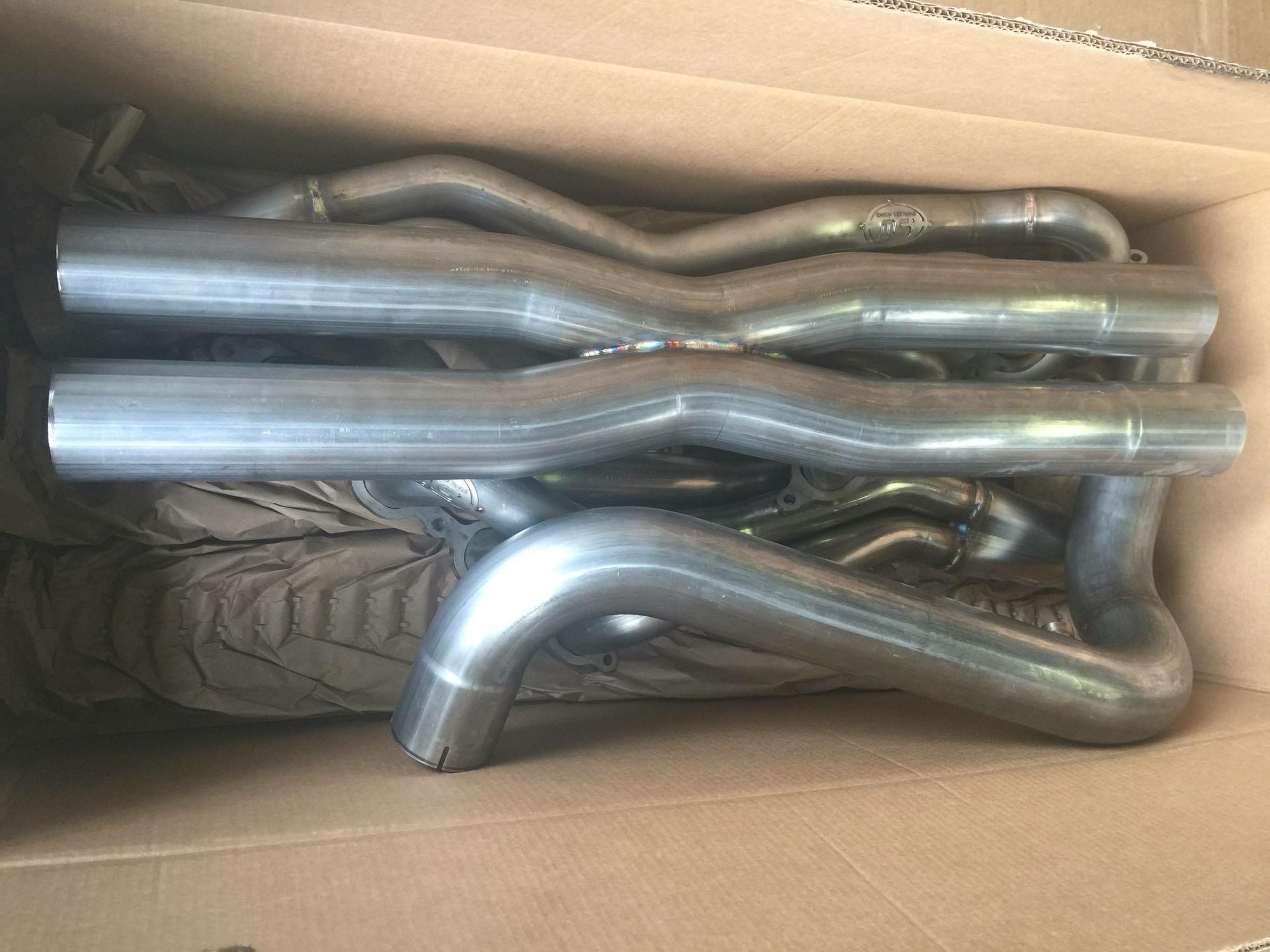 That and stainless works 1 7/8 3" X-pipe and true duals