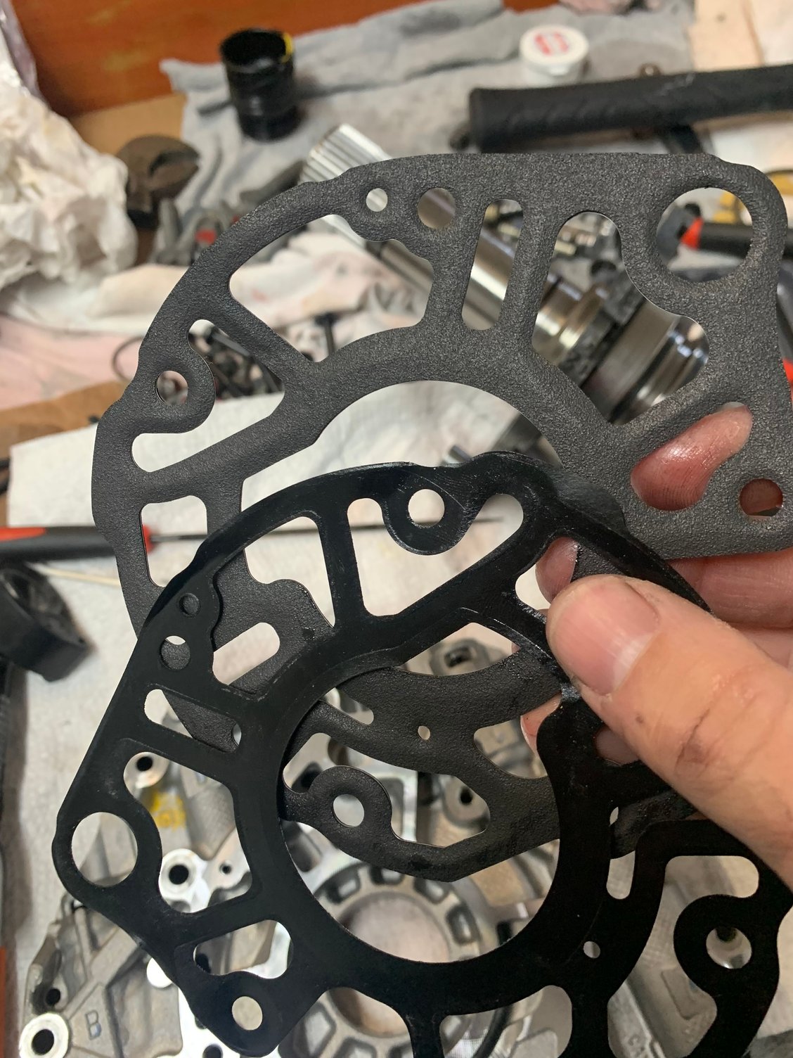 Quick Polish with Super-Micro finish belt. Few more pieces to go then I’ll apply some tungsten disulfide on the polished areas. Also switching over from OE aluminum bushings to bronze bushings. After removing the OE aluminum bushings I lightly dress the area the bushing sits in with 60grit sandpaper to help give some bite to the new bushing and prevent spinning.