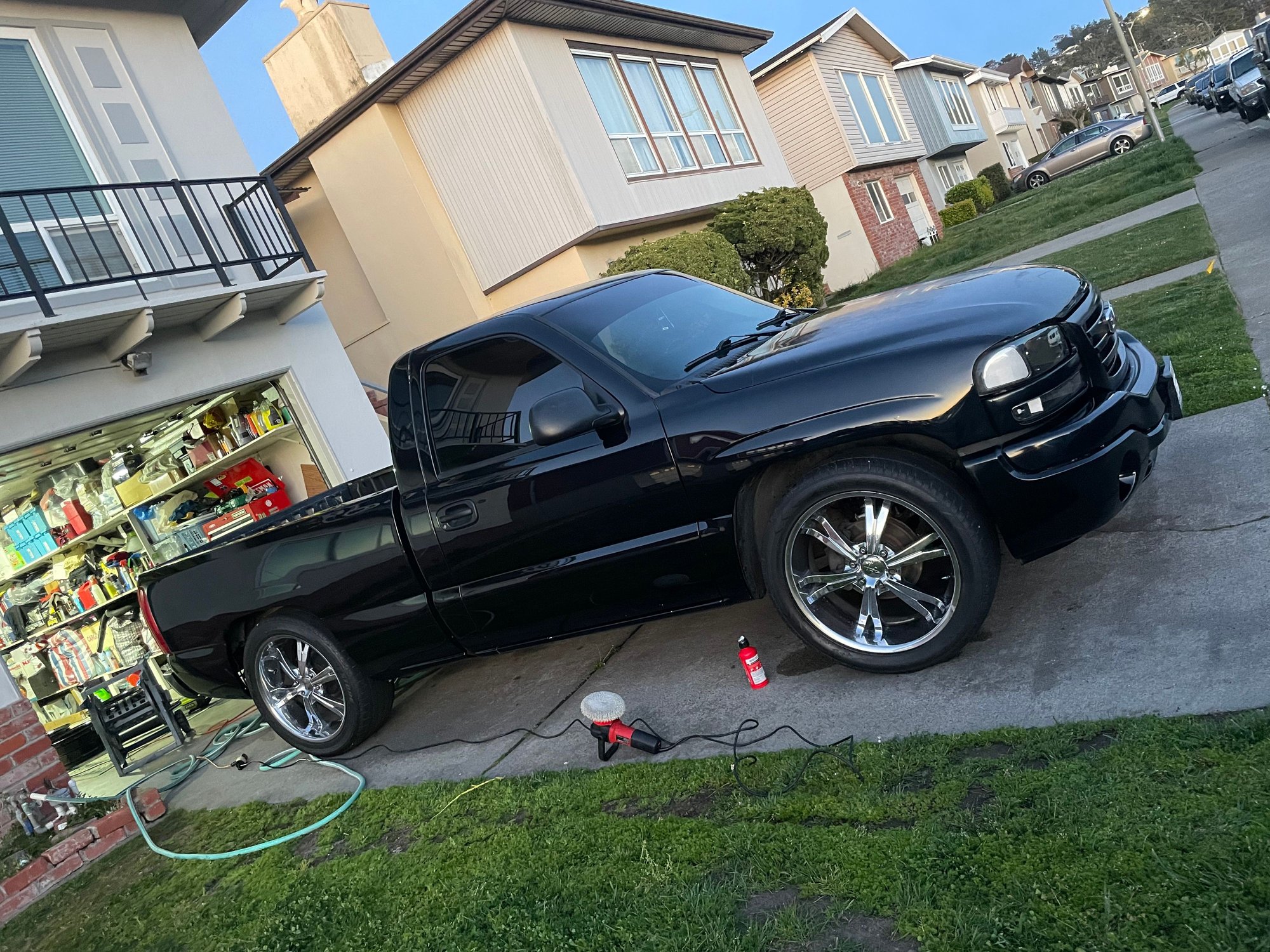 Just bought an 04 Sierra project 4.3 looking to do a swap soon. So far I have done the interior 3/4 drop and wheels. Lovin the look of how it came out! Will show some before and after photos Finished interior, leather seats, dash, suede headliner, changed everything from tan to gray and black.