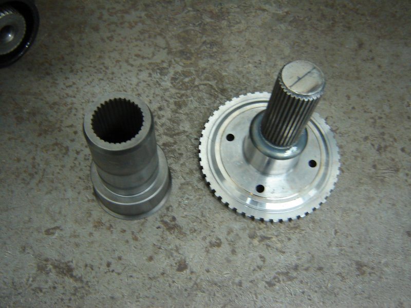 Our input gear next to a 4L80E output shaft Our input gear on a 4L80E transmission A NVG149 transfer case bolted up to a 4L80E with our input gear installed