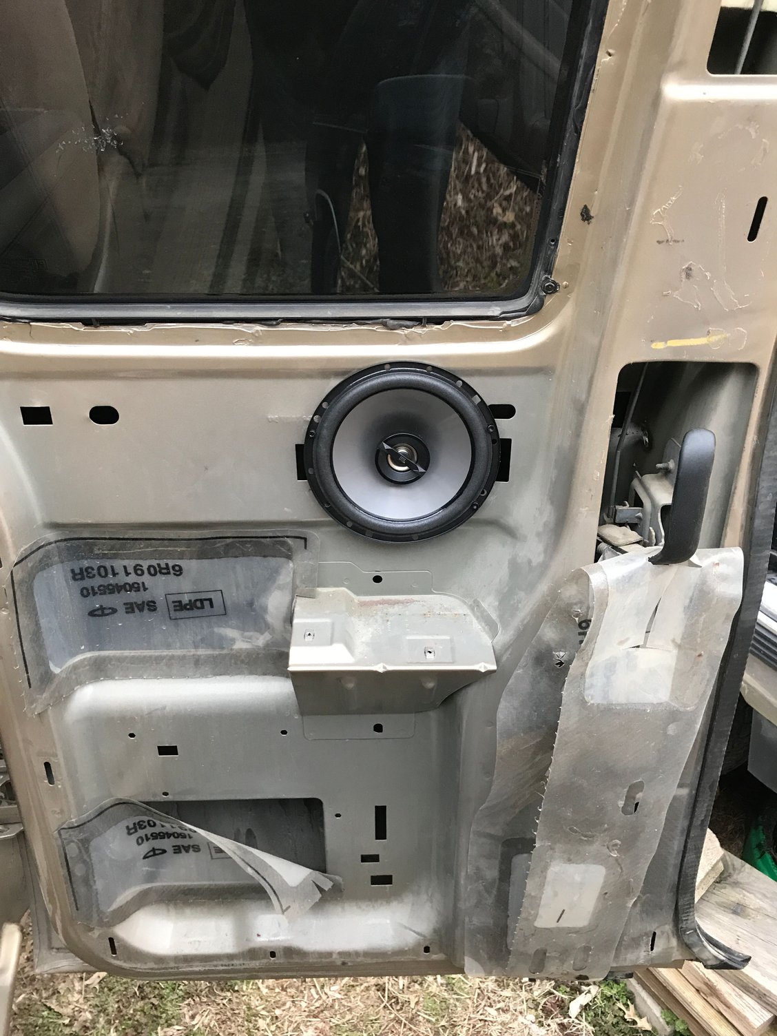 Well, just a little update on mine..... I got curious about just how much I’d have to really cut to get those 6.5’s in the rear doors. A dremel and spare time if dangerous with me, lol. Turned out to not really be that much honestly. Had to drill new holes to screw the speakers down but......they fit. Not sure if any other 6.5’s would fit but these do and the magnet had space behind it too. I will have to trim the door panel but it doesn’t effect the grill attachment points to the panel. Just to open it up to same size as the new speaker. Got a little few small details to wrap up and it’ll be done.