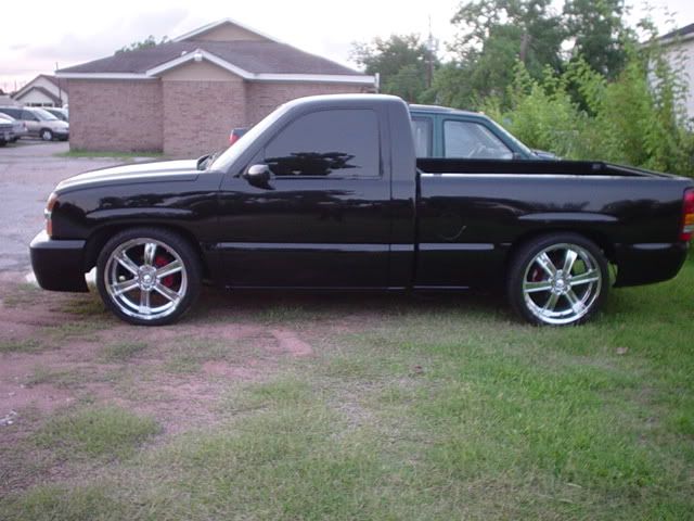 All right fellas, I need to sell my single cab to get my get my extended cab truck. It's a 5.3 Silverado with 45,000 miles on it. It has alot of work including.... Shaved door handles, SS Front bumper, Billet grill, 2/4 drop, Roll pan, Shaved tailgate, Cal-vu mirrors, Sound System, ramair and exhaust. Truck does need a little work though. PM me details, i'm in the houston area. Updated with pics now. Updated with new info, I will be adding my STS kit to this truck. Look forward to seeing a turbocharged 5.3. My wheels might be for sell.