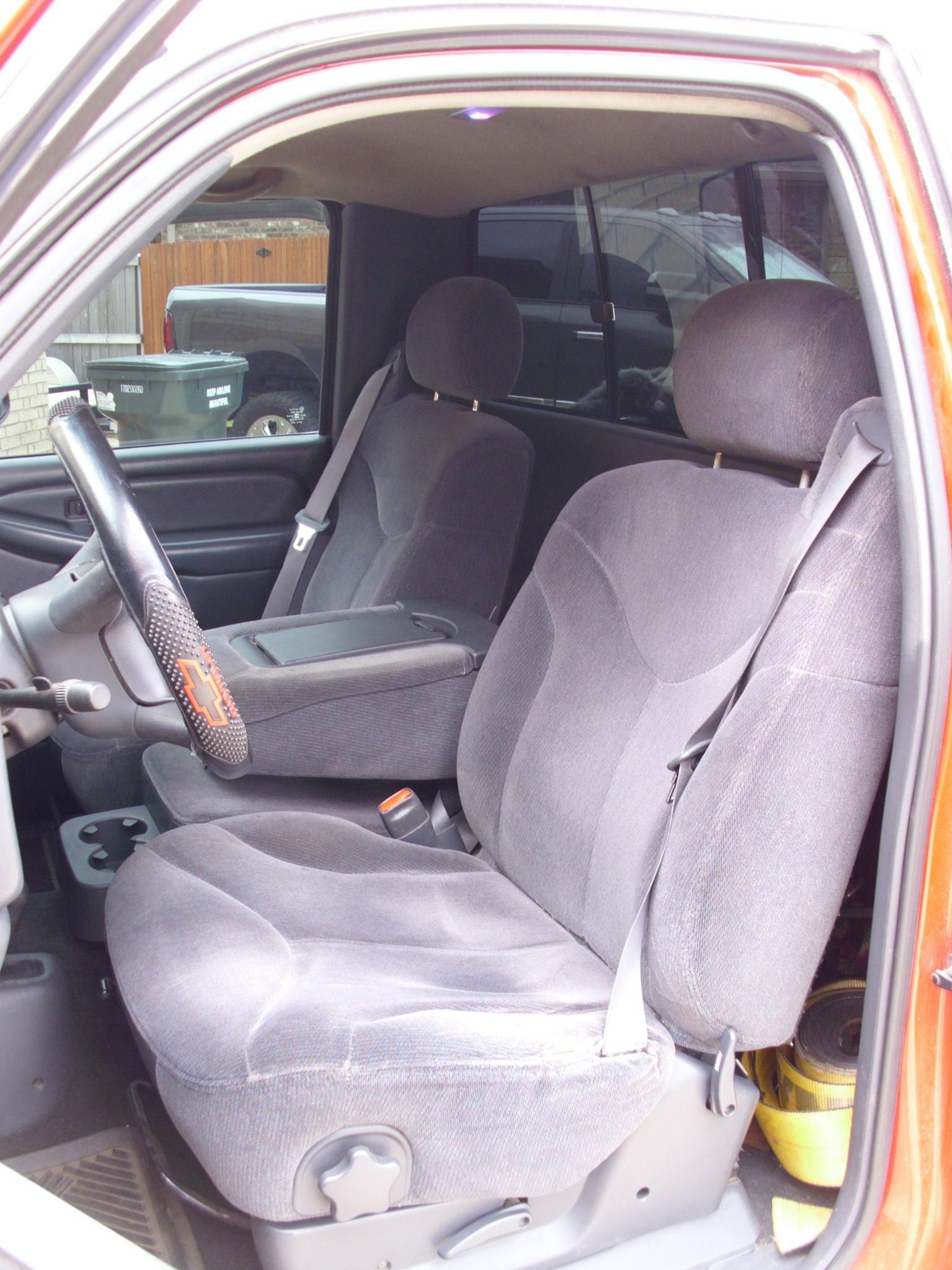 Custom-ordered with the SL package (chrome, carpet, sliding window, etc.) and an NV3500, this “professional grade” Southern truck’s a couple steps above the primarily W/T Chevy 5 speed rowboats you’ll see out there with the vinyl bench seats & floors (if you can even find a decent one). It ain’t got some of the fancy bells & whistles like power windows, locks, or seats… but you know how many of those switches, regulators, or actuator motors I’ve had to change? Zero; these simply work all the time. Also, the only rust is on the cheap Chinese ex-chrome center caps, in a couple small scratches on the bed, and the usual light surface stuff underneath for a TN, FL, TX vehicle (which saw four SD winters but was hosed down every few weeks). This baby’s solid: all the sheet metal is good, and I wouldn’t hesitate to load her up to 10k gross with my trailer & drive across the country again (which was my July 4th plan until I bought the diesel last week).