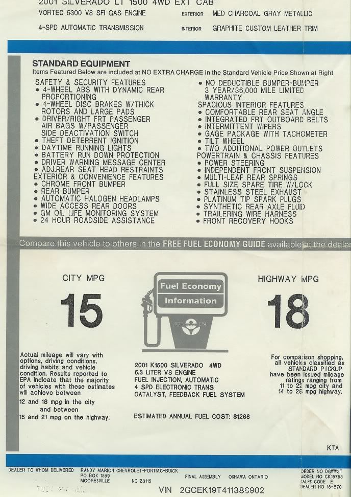 *Vehicle Make, Model, Year: 2001 chevy silverado ecsb lt 4x4 5.3