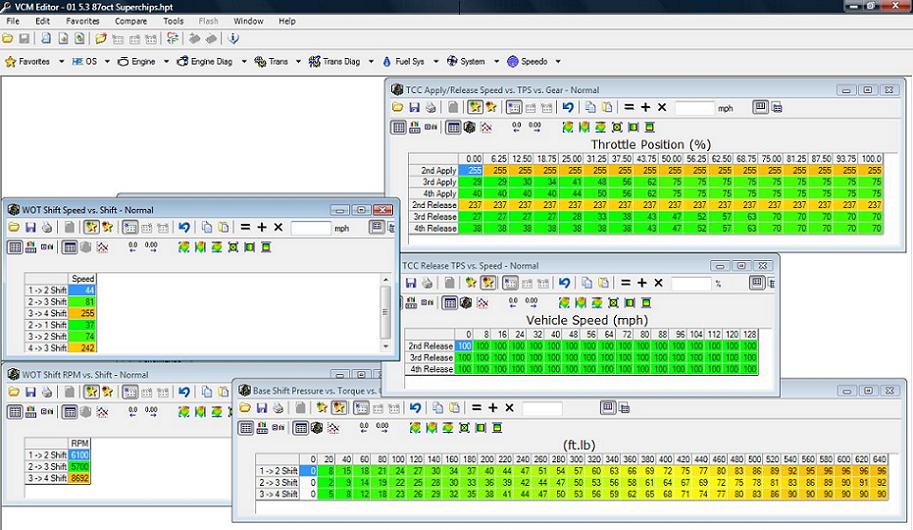 I have a guy that wants me to make his truck shift harder. He has a built 4l60 and I know I read somewhere that you are not supposed to up the shift pressure on a built tranny. What is a safe pressure for this tranny? What do the tables under the Auto Tcc heading do? Should any of those be changed?