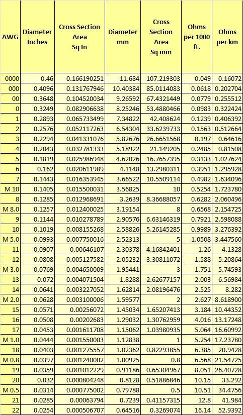 3 AWG sizes is almost exactly a factor of 2 of CSA.