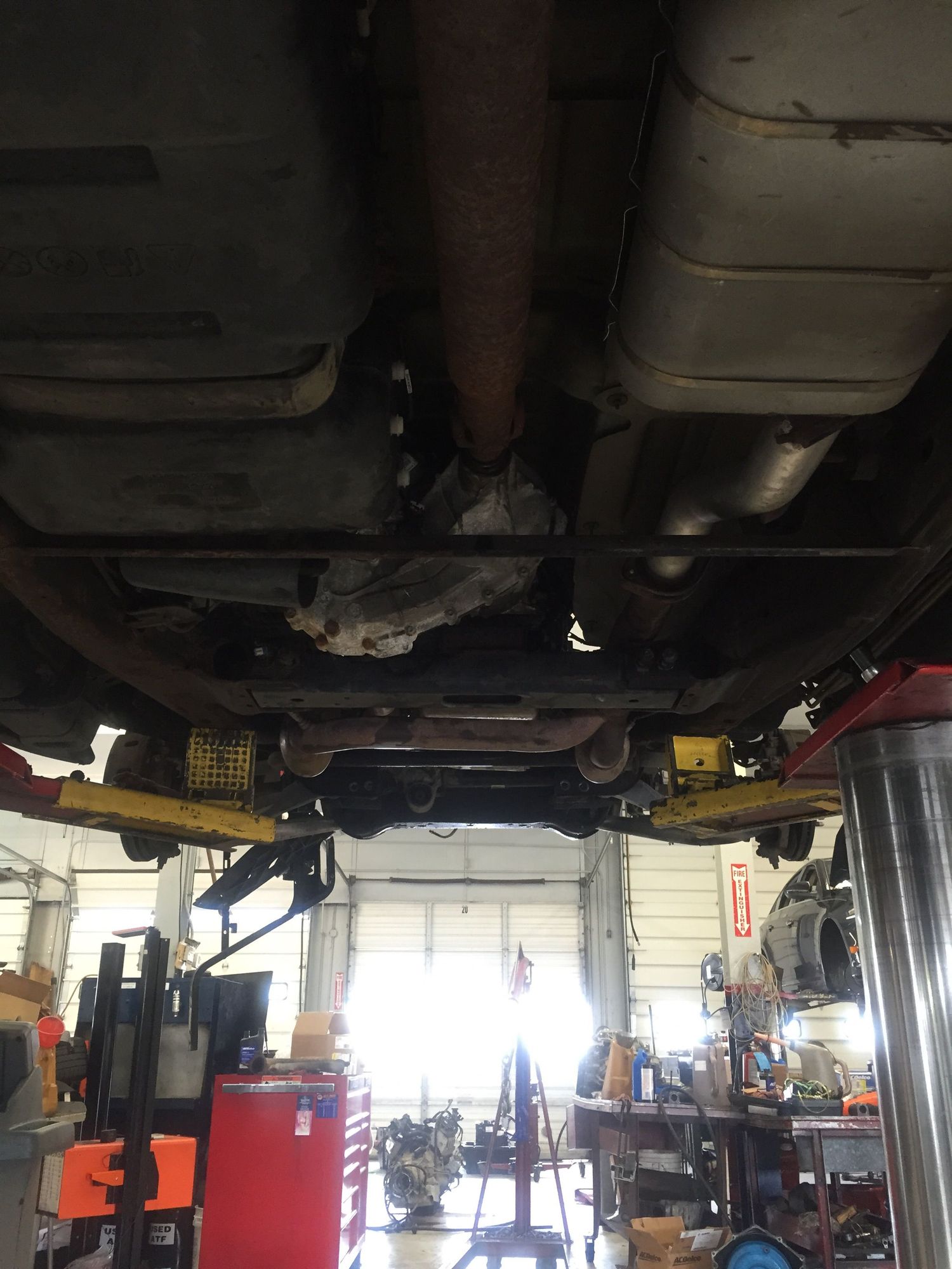 By 1:30 had t case driveshaft trans cross member etc all bolted in and buttoned up