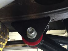 Thsi is where the brackets hit the frame... The raer bolt and the bolt on the side of the frame werent bad, its the front ones that were a pain especially the driver side, ended up dropping the evap canister to gain access to the hole in the frame.... I hit the frame with rubberized undercoating before i bolted the bracket down, i can make anything run...
